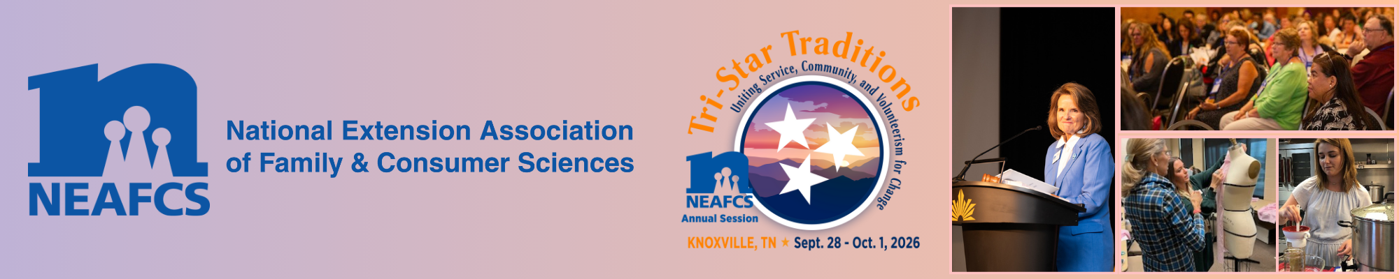 Member Opportunities - Click button(s) below to learn moreBecome a National Sponsor with NEAFCSThe Corporate Sponsor program allows for collaboration with like-minded organizations whose purpose is to help advocate the mission of NEAFCS including building awareness of FCS and its members, and to share evidence and science-based information with members that are useful in their professional work with the public. Click here for more informationMember Only Webinars